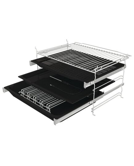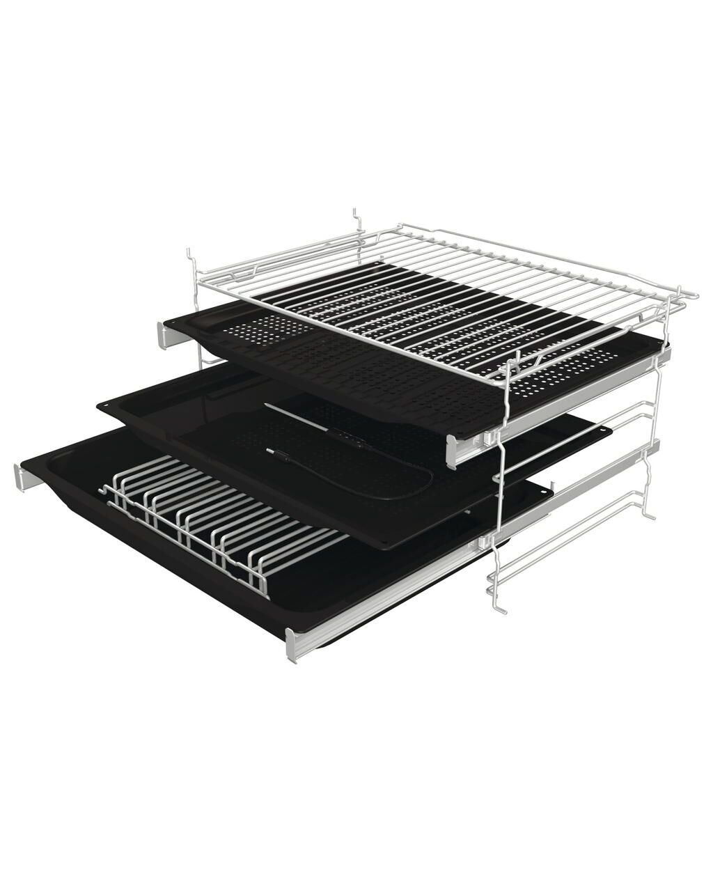 Piederumi 1 perforēta tvaicēšanas panna, 1 dziļā cepešpanna, 1 cepešpanna, 1 reste, termozonde