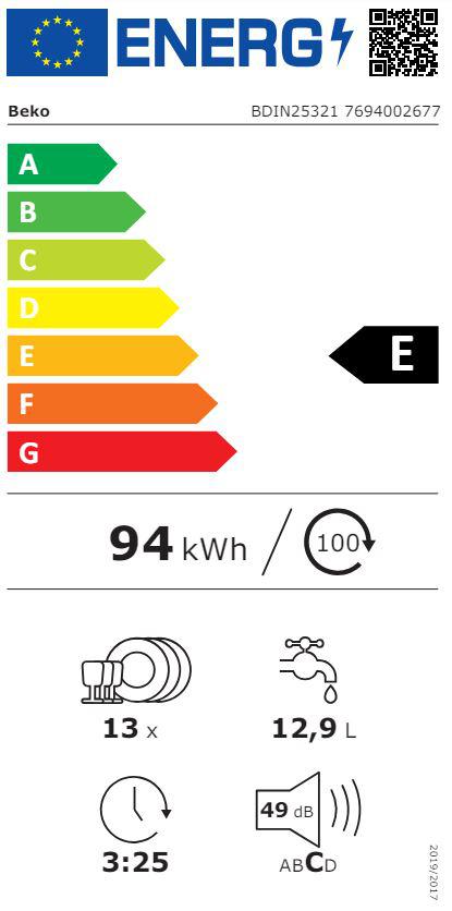 Beko BDIN25321 60cm Iebūvējama!