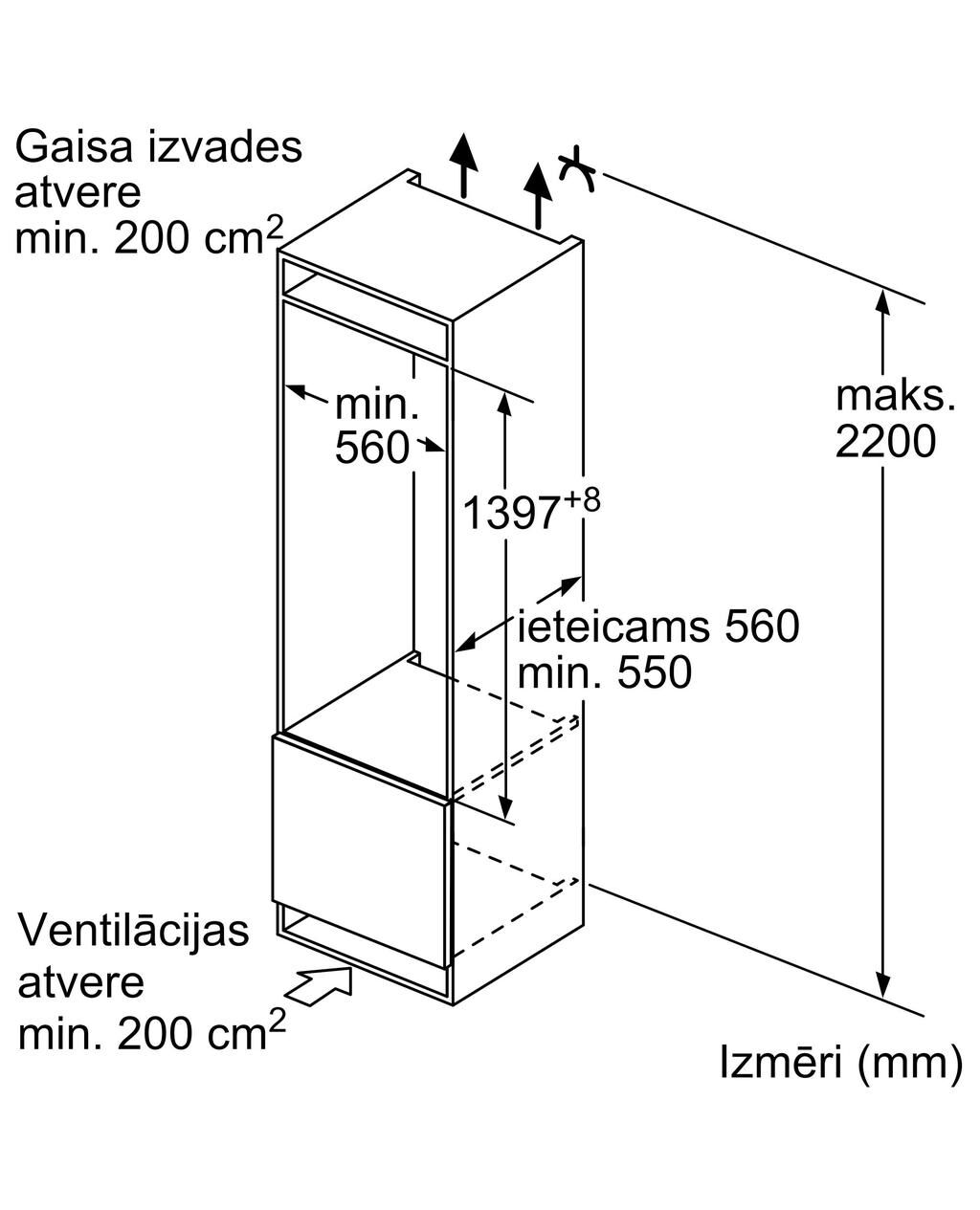 Bosch KIR51AFE0 139.7cm Iebūvējams!
