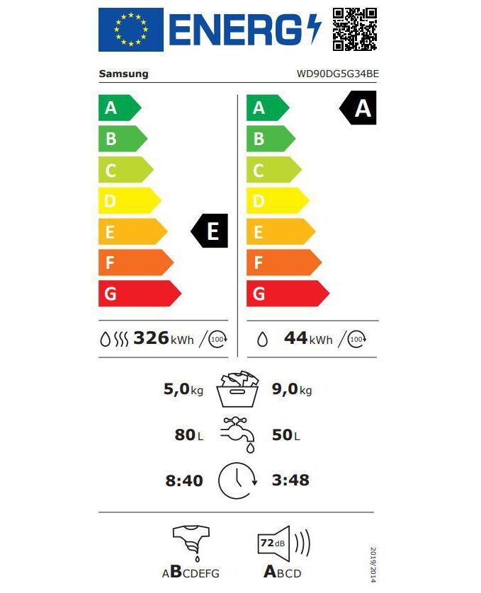 Energoefektivitātes klase mazgāšanas un žāvēšanas ciklā E