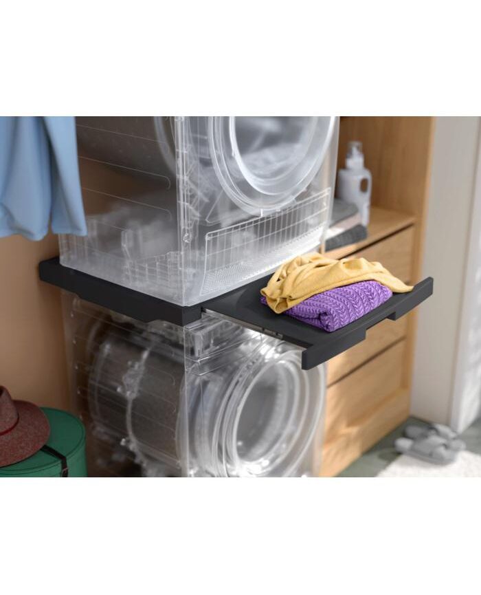 Papildu informācija Stabils risinājums žāvētāja novietošanai virs horizontālās ielādes veļas mašīnas ar dziļumu no 52 līdz 67 cm. Saderībai ar tumšajām veļas mašīnām/ veļas žāvētājiem.
