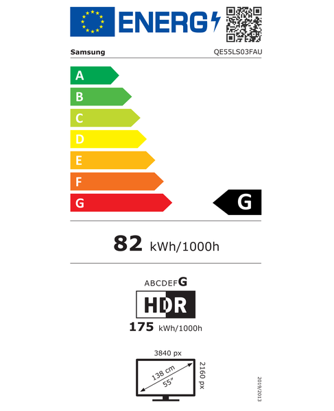 | Enerģijas patēriņš standarta dinamiskā diapazona režīmā (SDR), 1000 h | 82 kWh |