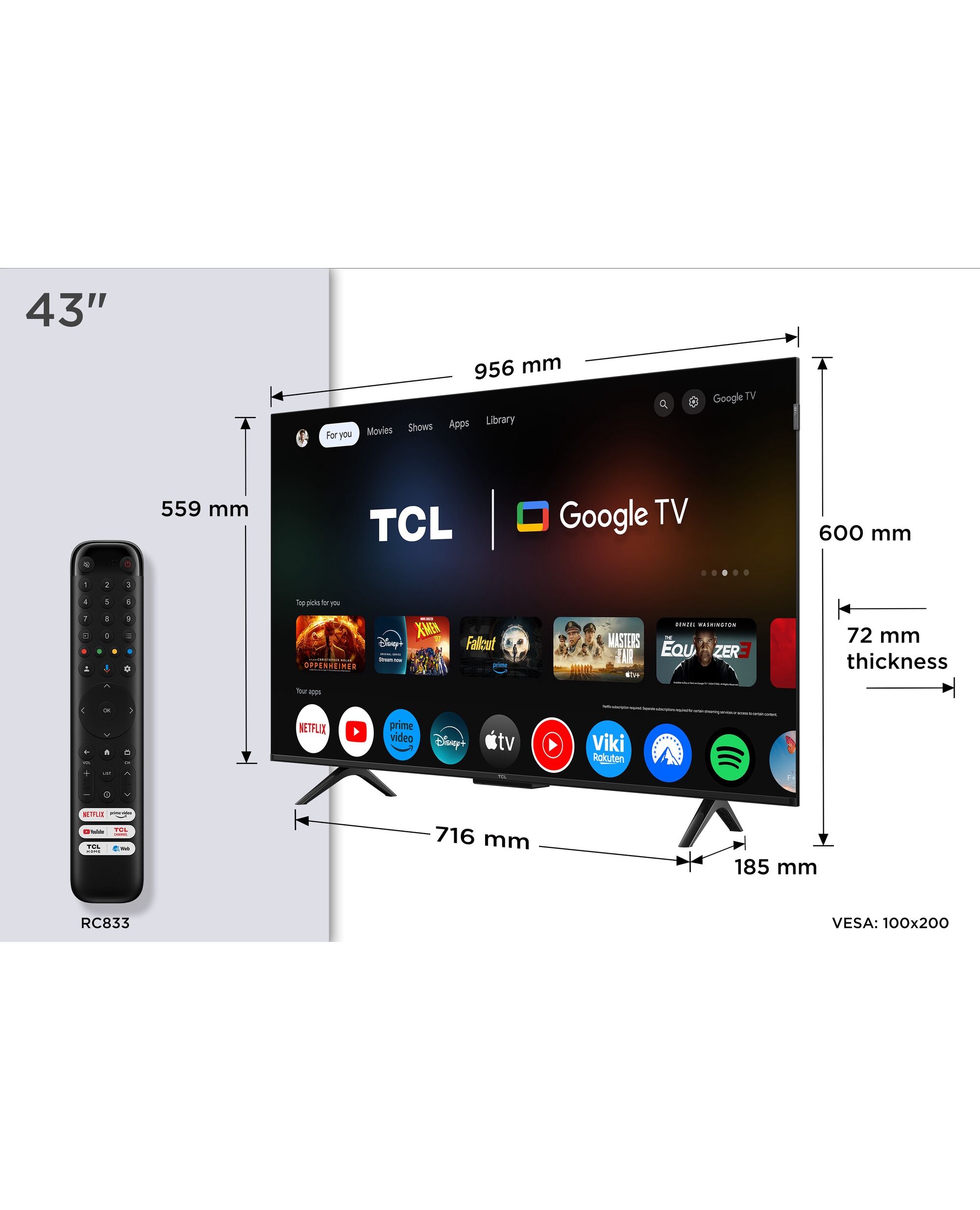 Ekrāna izmērs pa diagonāli 43 "