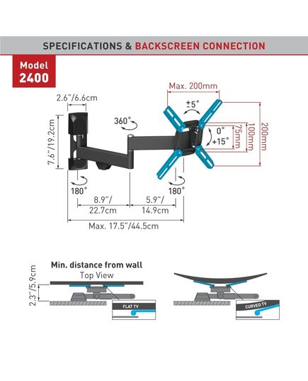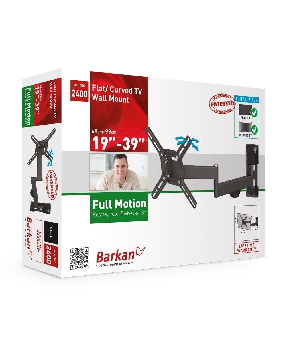 BARKAN 2400.B 26"-39" lygiam/lenktam TV, 4 lankstų, sieninis, juodas